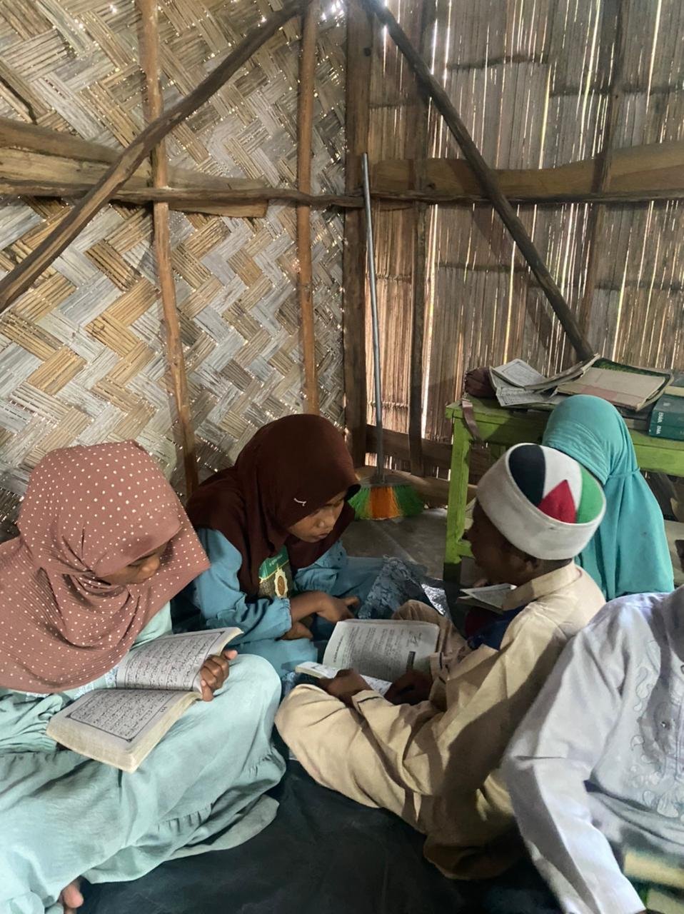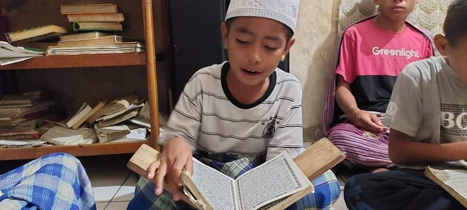 “Kak, kami disini pakai satu Al-Qur'an bertiga, kondisinya sudah sobek dan menguning. Kadang ada lembar yang sudah hilang,” ujar salah satu Santri.